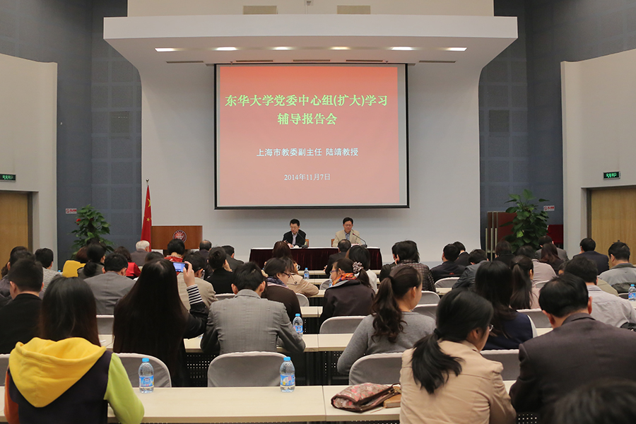 11月7日,学校在松江校区举行中心组(扩大)学习会议,上海市教委副主任陆靖教授作题为《高考改革方案制定中的若干思考》的辅导报告。校党委书记朱民,校长徐明稚,党委副书记殷耀,副校长宋立群、俞建勇、陈招应、刘春红、邱高、李永智出席。殷耀主持学习会议。