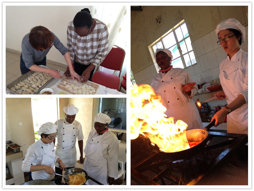 为给当地人民奉献一场精美的文化大餐,孔院师生用近一个月时间进行活动的策划、设计和组织实施——周磊老师负责组织实施,江瀛老师利用业余时间教学生做中国菜,张伊老师精心构思设计了中国八大菜系宣传海报。活动当天,中外师生一起蒸炒炸煮腌,剁饺馅、包饺子,通过亲手参与制作中国食品,领略中华饮食文化的博大精深。