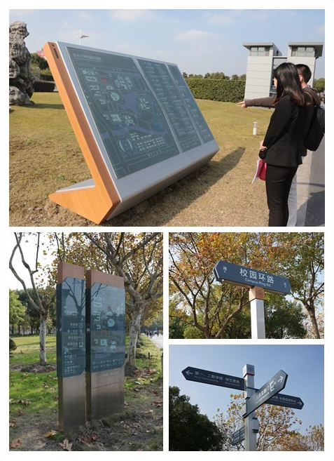 日前,延安路校区校园导视系统基本建成并投入使用,为师生及访客提供清晰连贯的导视信息。几种东华元素巧妙地融入在导视设计当中,令大家耳目一新。