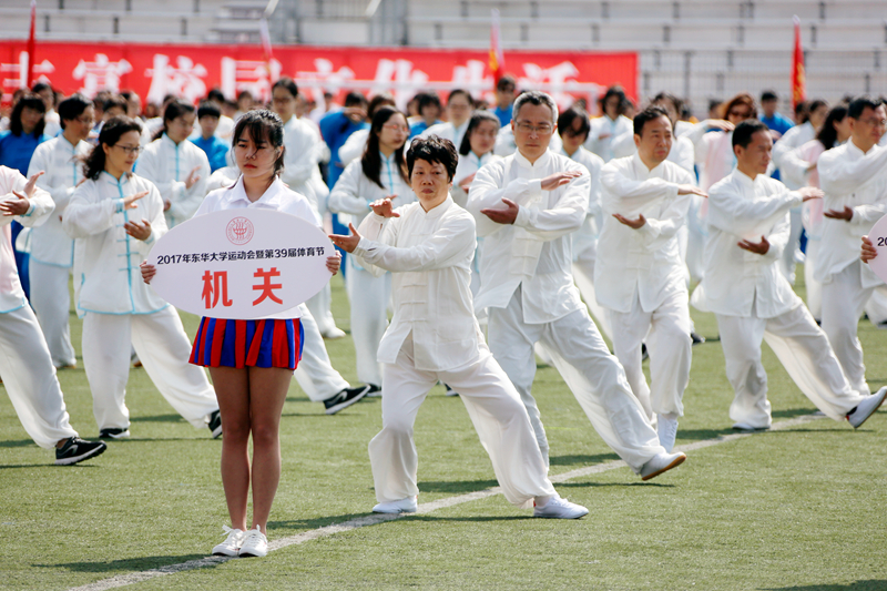 5月9日,2017年久久久久国产成人精品亚洲综合运动会暨第39届体育节开幕式在松江校区举行。开幕式进行了方阵队列展示,还举行了教工太极拳比赛、学生广播操比赛,学生社团带来了精彩的表演。
