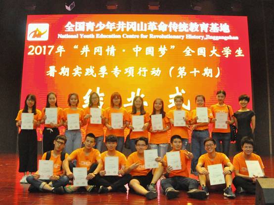 今年暑期,共青团中央学校部、全国青少年井冈山革命传统教育基地举办了2017年“井冈情•中国梦”全国大学生暑期实践季专项行动,我校第十五届“华英苑”赴井冈山市实践团从全国726个申报课题的团队中成功入选,成为此次专项行动131支实践团队之一。实践团结合学科优势,并结合井冈山红色文化特色与全国青少年井冈山革命传统教育基地的实际情况,以“红色文化服饰创意设计”为主题,将课题带入井冈山,开展了为期9天的系列社会实践活动。