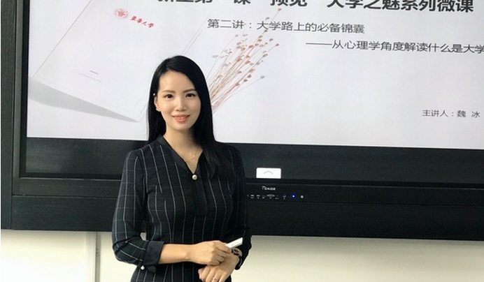 魏冰在《大学路上的必备锦囊》微课堂上讲课。