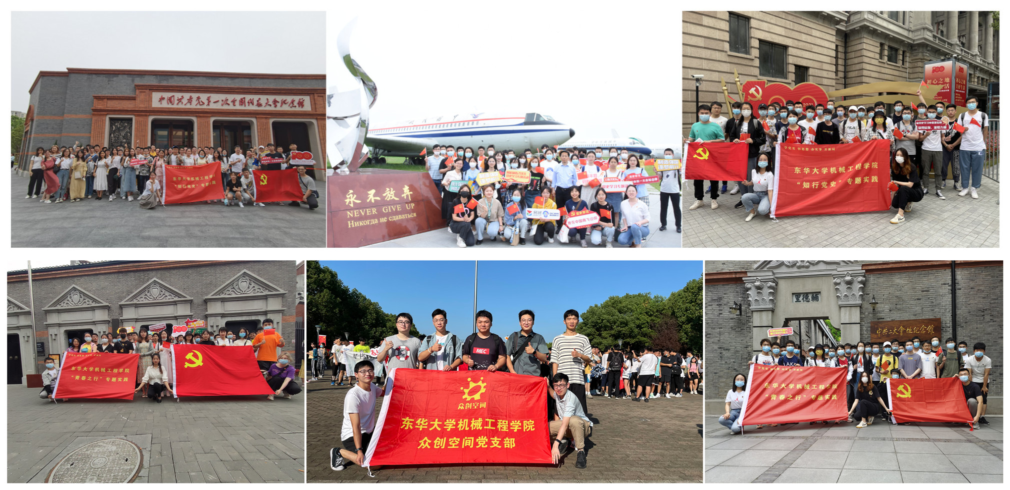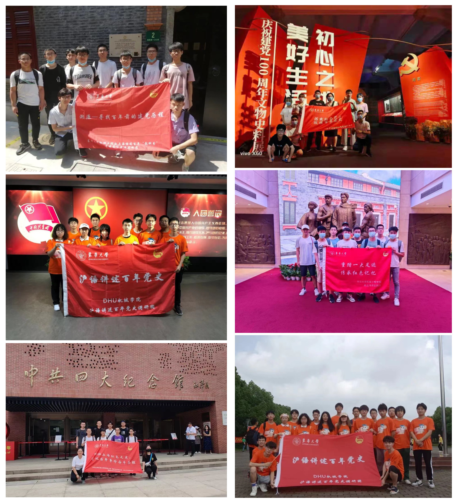 结合国庆72周年,组织党员、入党积极分子追寻百年初心,重温红色历史,传承建党精神,寻访中共一大会址、中国社会主义青年团中央机关旧址纪念馆、中共四大纪念馆、《共产党宣言》展示馆(陈望道旧居)、上海孙中山故居纪念馆等13个红色场馆,激励师生从党史中汲取持续的奋斗之力,坚定理想信念,勇担历史使命。
