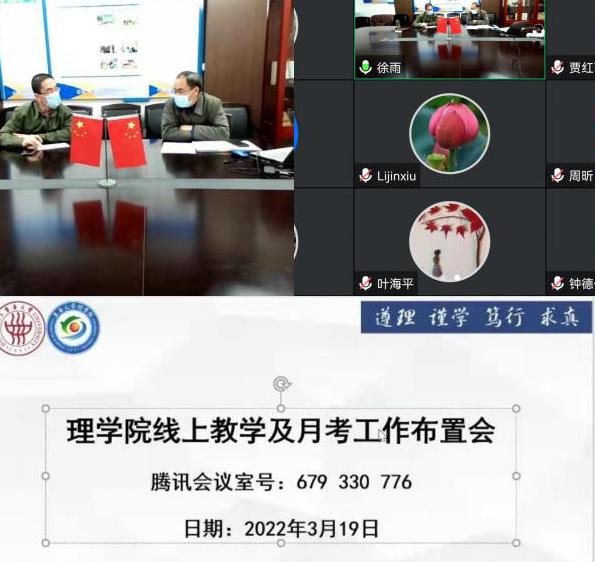 此次月考是全校自3月14日全面开展线上教学以来的首场考试,备考过程得到教务处和理学院的高度重视。为此,理学院专门组织了“月考”准备工作会议,党委副书记谢峰做备考动员,号召课程教师凝心聚力,发挥优师模范作用,在疫情网络教学情况下,要定期开展教学研讨活动,要加强与学生的交流,掌握调动学生网课积极性的方法。副院长唐晓亮传达了教务处“保质量、保公平”的工作要求,并逐一了解各课程教学团队的备考工作及存在的困难。数学教研中心与各课程团队负责老师分别汇报、交流了出题、模拟发卷、发卷、收卷、评分等环节的准备工作。大家积极交流,统一思想,形成共识,力保“月考惯例不打破,教学质量不滑坡”,努力争取“线上线下教学等效同质”。
