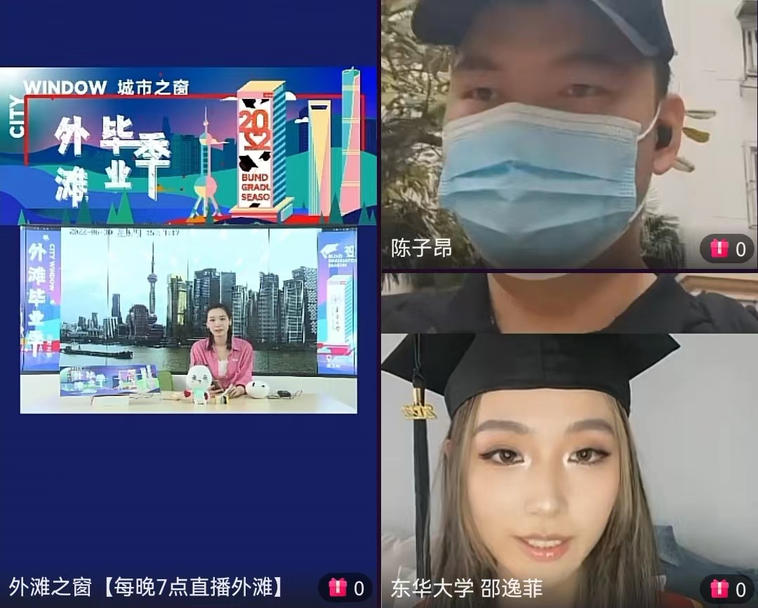 通过“外滩之窗”抖音直播间,亮灯活动主持人、毕业生程圆与毕业生代表、校友等云端连线。歌曲《初见》的吉他手殷铭谈到,这首歌既有我们对大学生活的美好回忆,也饱含了我们对开启人生新征程的憧憬。毕业生陈子昂连线时说:“这是我第4次观看亮灯活动,只是今年的主角已变成自己,校园的经历将成为我们弥足珍贵的青春记忆。”毕业生邵逸菲在外滩附近工作,下班后第一时间来到现场:“外滩亮灯为毕业季带来满满仪式感,希望大家成就自我、绽放光芒。”