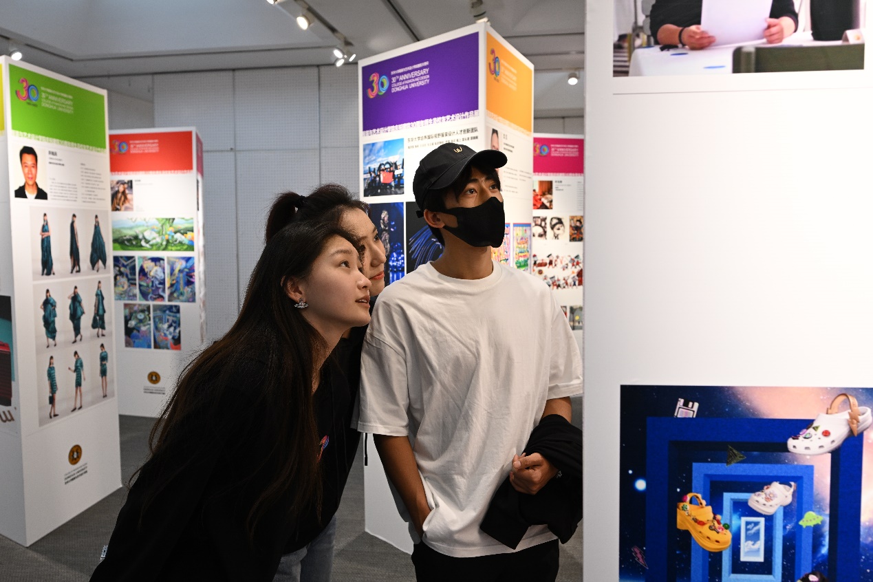 极具创意的艺术装置、妙手丹青的绘画、惟妙惟肖的雕塑、时尚前卫的服装、引领潮流的鞋品……精心挑选的展品“吸睛”无数。师生校友70余件作品荟聚在匠心独具的“师生及校友艺术设计作品展”,集中展现了学院教师、校友的创作实力和设计艺术水平,也是学院人才培养成果的“橱窗”。如果要填满这个“橱窗”靠的是设计师人才,这些人才就是解决纺织和服装以及时尚产业转型和提升的核心软要素。持之以恒,不断输送“东华软要素”就是久久久久国产成人精品亚洲综合服装与艺术设计学院的育人使命。让这些“设计后浪”戴着东华新锐设计师的光环走向社会,不断成长,在中国乃至世界时尚设计产业的海洋中“锐不可当”。